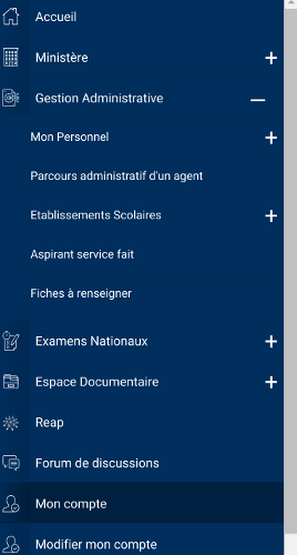 Le système éducatif utilise beaucoup de tableaux pour la représentation des données scolaires. De ce fait, la plateforme EducMaster a opté pour un système de menus qui dégage suffisamment de place au centre des pages. Ainsi vous diposez de deux champs de menus sur la plateforme :
